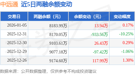 证券之星消息,1月5日,中远通(301516)融资买入382.63万元,融资偿还368.7万元,融资净买入13.94万元,融资余额8183.99万元,近20个交易日中有14个交易日出现融资净买入。