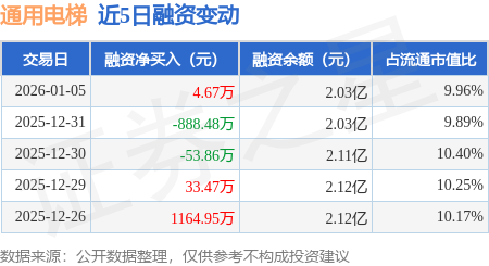 证券之星消息,1月5日,通用电梯(300931)融资买入611.18万元,融资偿还606.51万元,融资净买入4.67万元,融资余额2.03亿元,近20个交易日中有15个交易日出现融资净买入。