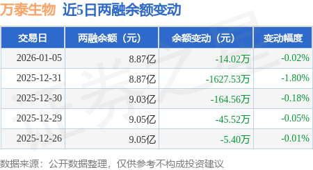 证券之星消息,1月5日,万泰生物(603392)融资买入1653.95万元,融资偿还1659.67万元,融资净卖出5.72万元,融资余额8.84亿元。