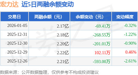 证券之星消息,1月5日,宏力达(688330)融资买入1044.63万元,融资偿还1115.42万元,融资净卖出70.79万元,融资余额2.17亿元。