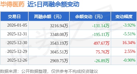 证券之星消息,1月5日,毕得医药(688073)融资买入790.7万元,融资偿还921.84万元,融资净卖出131.14万元,融资余额3216.94万元。