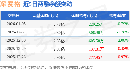 证券之星消息,1月5日,深 赛 格(000058)融资买入1300.89万元,融资偿还1521.18万元,融资净卖出220.29万元,融资余额2.77亿元。