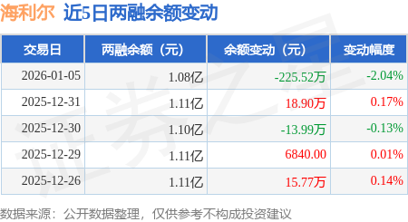 证券之星消息,1月5日,海利尔(603639)融资买入473.86万元,融资偿还696.45万元,融资净卖出222.59万元,融资余额1.08亿元,近20个交易日中有12个交易日出现融资净买入。
