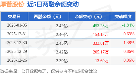 证券之星消息,1月5日,厚普股份(300471)融资买入2136.41万元,融资偿还2589.65万元,融资净卖出453.24万元,融资余额2.42亿元,近20个交易日中有11个交易日出现融资净买入。