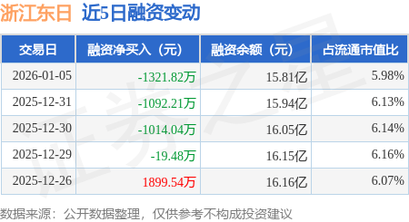 证券之星消息,1月5日,浙江东日(600113)融资买入3991.78万元,融资偿还5313.6万元,融资净卖出1321.82万元,融资余额15.81亿元,近20个交易日中有12个交易日出现融资净买入。