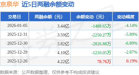 证券之星消息,1月5日,京泉华(002885)融资买入3931.63万元,融资偿还5416.24万元,融资净卖出1484.6万元,融资余额3.44亿元。