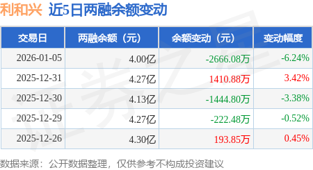 证券之星消息,1月5日,利和兴(301013)融资买入6525.08万元,融资偿还9191.82万元,融资净卖出2666.75万元,融资余额4.0亿元。