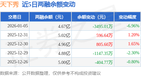 证券之星消息,1月5日,天下秀(600556)融资买入1.41亿元,融资偿还1.76亿元,融资净卖出3520.45万元,融资余额4.64亿元。
