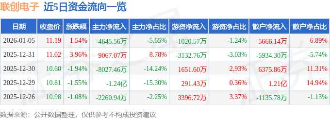 1月5日的资金流向数据方面,主力资金净流出4645.56万元,占总成交额5.65%,游资资金净流出1020.57万元,占总成交额1.24%,散户资金净流入5666.14万元,占总成交额6.89%。