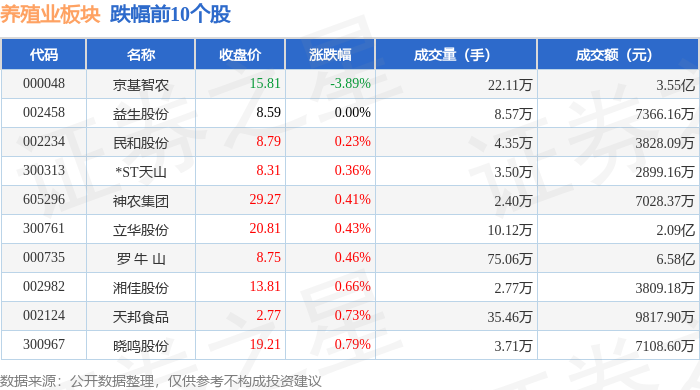 从资金流向上来看,当日养殖业板块主力资金净流出4127.8万元,游资资金净流出8114.99万元,散户资金净流入1.22亿元。养殖业板块个股资金流向见下表: