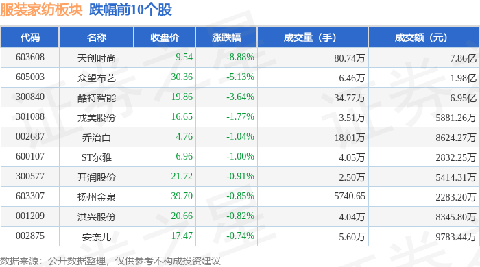 从资金流向上来看,当日服装家纺板块主力资金净流出1839.18万元,游资资金净流出2621.15万元,散户资金净流入4460.33万元。服装家纺板块个股资金流向见下表: