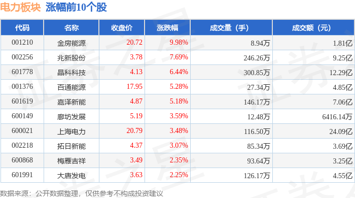 证券之星消息,1月6日电力板块较上一交易日上涨0.77%,金房能源领涨。当日上证指数报收于4083.67,上涨1.5%。深证成指报收于14022.55,上涨1.4%。电力板块个股涨跌见下表:
