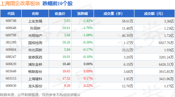 从资金流向上来看,当日上海国企改革板块主力资金净流入1.96亿元,游资资金净流出8.79亿元,散户资金净流入6.82亿元。上海国企改革板块个股资金流向见下表: