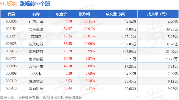 证券之星消息,1月6日5G板块较上一交易日上涨0.01%,广西广电领涨。当日上证指数报收于4083.67,上涨1.5%。深证成指报收于14022.55,上涨1.4%。5G板块个股涨跌见下表: