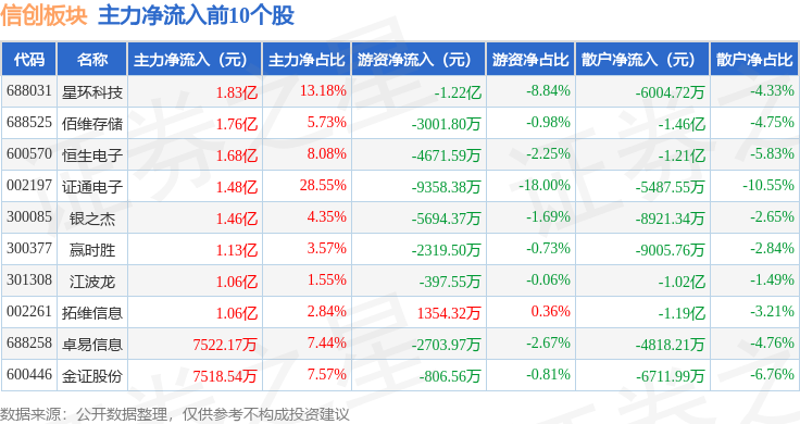 从资金流向上来看,当日信创板块主力资金净流出40.64亿元,游资资金净流出7935.27万元,散户资金净流入41.44亿元。信创板块个股资金流向见下表: