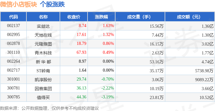从资金流向上来看,当日微信小店板块主力资金净流出1.67亿元,游资资金净流出2214.37万元,散户资金净流入1.9亿元。微信小店板块个股资金流向见下表:
