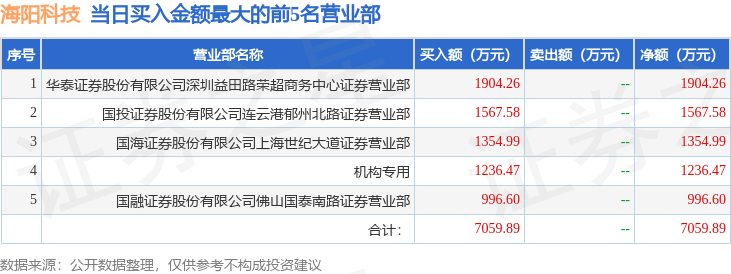 从龙虎榜公布的当日买卖数据来看,机构合计净买入1236.47万元。徐留胜等知名游资榜上有名。(知名游资徐留胜一般指华泰证券股份有限公司深圳益田路荣超商务中心证券营业部席位,根据市场资料整理,仅供参考)