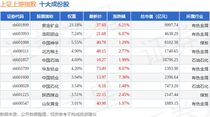 上证上游(000094)指数十大成份股详情如下: