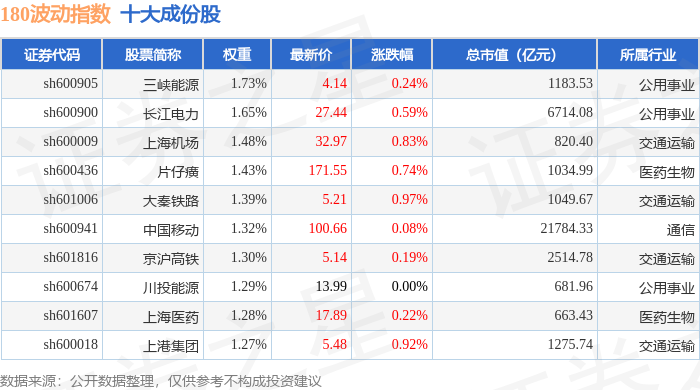 180波动(000129)指数十大成份股详情如下: