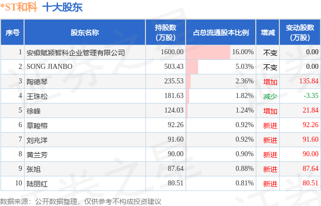 根据*ST和科2025年三季报公布的十大股东详情如下: