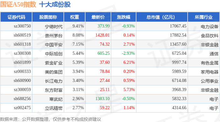资金流向方面,国证A50(399310)指数成份股当日主力资金净流入合计27.89亿元,游资资金净流入合计5.74亿元,散户资金净流出合计33.63亿元。成份股资金流向详情见下表: