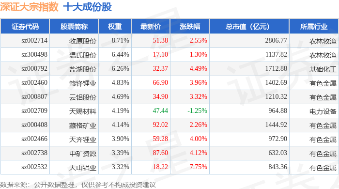 深证大宗(399639)指数十大成份股详情如下: