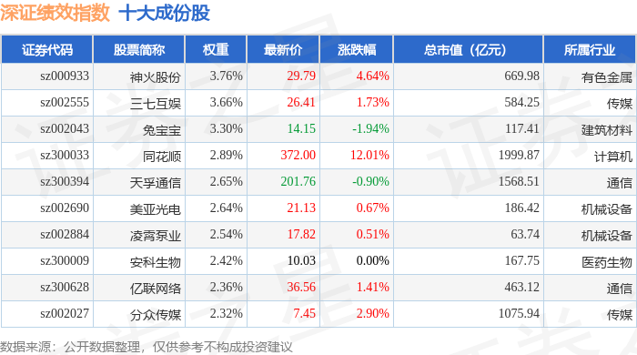 深证绩效(399655)指数十大成份股详情如下:
