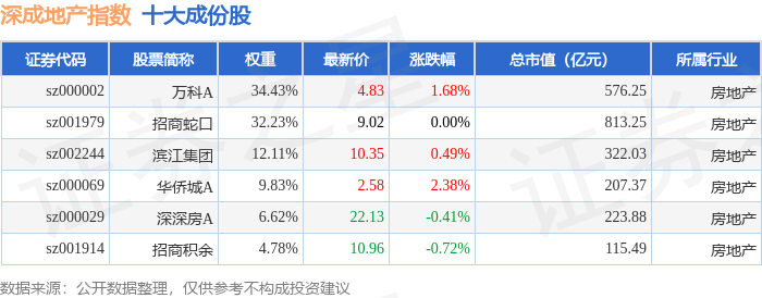 证券之星消息,1月6日,深成地产(971001)指数报收于426.88点,涨0.81%,成交26.42亿元,换手率1.54%。当日该指数成份股中,上涨的有3家,华侨城A以2.38%的涨幅领涨,下跌的有2家,招商积余以0.72%的跌幅领跌。