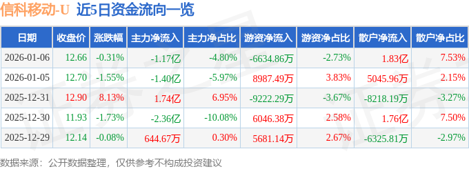 证券之星消息,截至2026年1月6日收盘,信科移动(688387)报收于12.66元,下跌0.31%,换手率9.78%,成交量197.32万手,成交额24.3亿元。