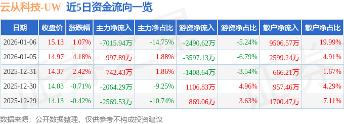 1月6日的资金流向数据方面,主力资金净流出7015.94万元,占总成交额14.75%,游资资金净流出2490.62万元,占总成交额5.24%,散户资金净流入9506.57万元,占总成交额19.99%。