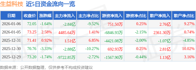 证券之星消息,截至2026年1月6日收盘,生益科技(600183)报收于72.05元,下跌1.64%,换手率1.72%,成交量41.17万手,成交额29.79亿元。