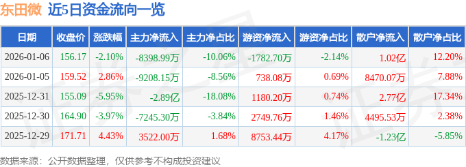 证券之星消息,截至2026年1月6日收盘,东田微(301183)报收于156.17元,下跌2.1%,换手率9.11%,成交量5.35万手,成交额8.35亿元。