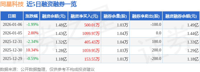 证券之星消息,截至2026年1月6日收盘,同星科技(301252)报收于32.5元,下跌1.99%,换手率15.47%,成交量7.32万手,成交额2.39亿元。