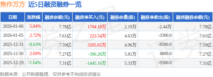 近5日融资融券数据一览见下表: