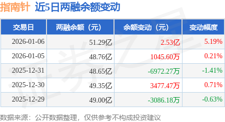 证券之星消息,1月6日,指南针(300803)融资买入14.88亿元,融资偿还12.42亿元,融资净买入2.45亿元,融资余额50.98亿元,当日融资净买入排名第18,近20个交易日中有12个交易日出现融资净买入。