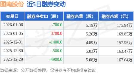 证券之星消息,1月6日,图南股份(300855)融资买入6521.8万元,融资偿还2799.22万元,融资净买入3722.57万元,融资余额3.31亿元,近20个交易日中有12个交易日出现融资净买入。
