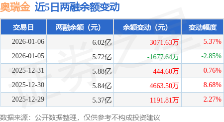 证券之星消息,1月6日,奥瑞金(002701)融资买入5522.56万元,融资偿还2450.99万元,融资净买入3071.57万元,融资余额6.0亿元。