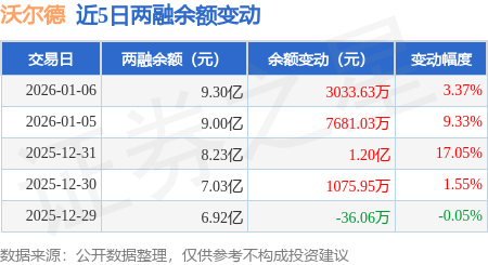 证券之星消息,1月6日,沃尔德(688028)融资买入1.09亿元,融资偿还7818.17万元,融资净买入3033.63万元,融资余额9.3亿元,近3个交易日已连续净买入累计2.27亿元,近20个交易日中有11个交易日出现融资净买入。