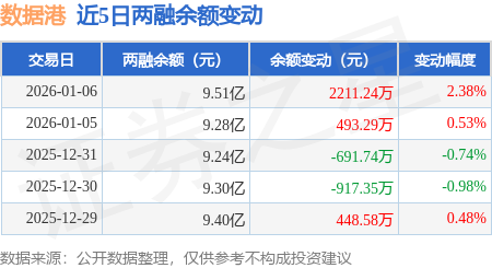 证券之星消息,1月6日,数据港(603881)融资买入1.41亿元,融资偿还1.19亿元,融资净买入2238.45万元,融资余额9.48亿元。