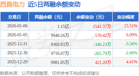 证券之星消息,1月6日,西昌电力(600505)融资买入2305.91万元,融资偿还766.62万元,融资净买入1539.3万元,融资余额1.15亿元,近20个交易日中有11个交易日出现融资净买入。