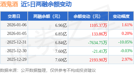 证券之星消息,1月6日,酒鬼酒(000799)融资买入6318.44万元,融资偿还5213.44万元,融资净买入1105.0万元,融资余额6.96亿元,近20个交易日中有13个交易日出现融资净买入。