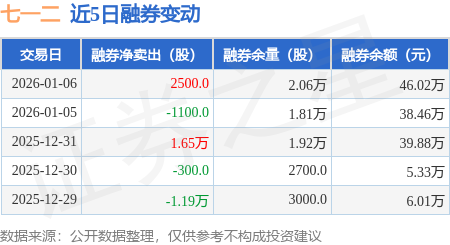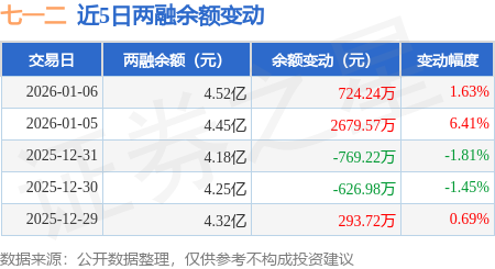 证券之星消息,1月6日,七一二(603712)融资买入9495.9万元,融资偿还8779.22万元,融资净买入716.68万元,融资余额4.51亿元。