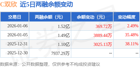 证券之星消息,1月6日,C双欣(001369)融资买入7350.84万元,融资偿还6981.13万元,融资净买入369.72万元,融资余额1.52亿元,近3个交易日已连续净买入累计7284.29万元。