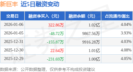 证券之星消息,1月6日,新巨丰(301296)融资买入583.91万元,融资偿还261.05万元,融资净买入322.86万元,融资余额1.02亿元,近20个交易日中有12个交易日出现融资净买入。