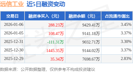 证券之星消息,1月6日,远信工业(301053)融资买入1077.78万元,融资偿还789.55万元,融资净买入288.23万元,融资余额9429.41万元,近20个交易日中有11个交易日出现融资净买入。