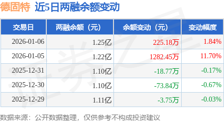 证券之星消息,1月6日,德固特(300950)融资买入1380.28万元,融资偿还1155.1万元,融资净买入225.18万元,融资余额1.25亿元。