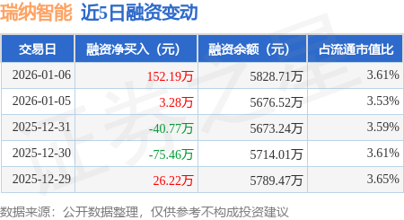 证券之星消息,1月6日,瑞纳智能(301129)融资买入431.87万元,融资偿还279.67万元,融资净买入152.19万元,融资余额5828.71万元,近20个交易日中有11个交易日出现融资净买入。