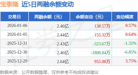 证券之星消息,1月6日,宝泰隆(601011)融资买入2141.92万元,融资偿还2004.31万元,融资净买入137.62万元,融资余额2.45亿元。