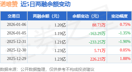 证券之星消息,1月6日,诺唯赞(688105)融资买入464.82万元,融资偿还374.95万元,融资净买入89.87万元,融资余额1.2亿元,近20个交易日中有13个交易日出现融资净买入。