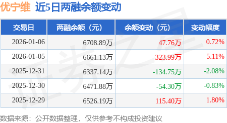 证券之星消息,1月6日,优宁维(301166)融资买入413.8万元,融资偿还366.05万元,融资净买入47.76万元,融资余额6708.89万元,近20个交易日中有15个交易日出现融资净买入。